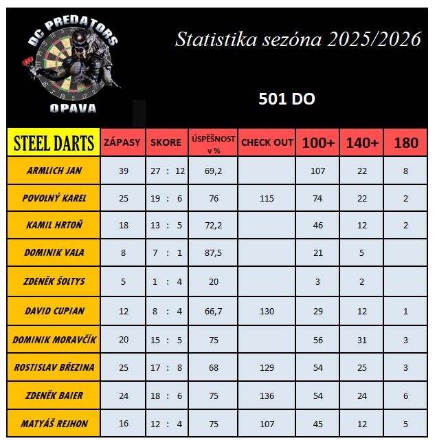 Statistika:Šipky klub DC PREDATORS OPAVA